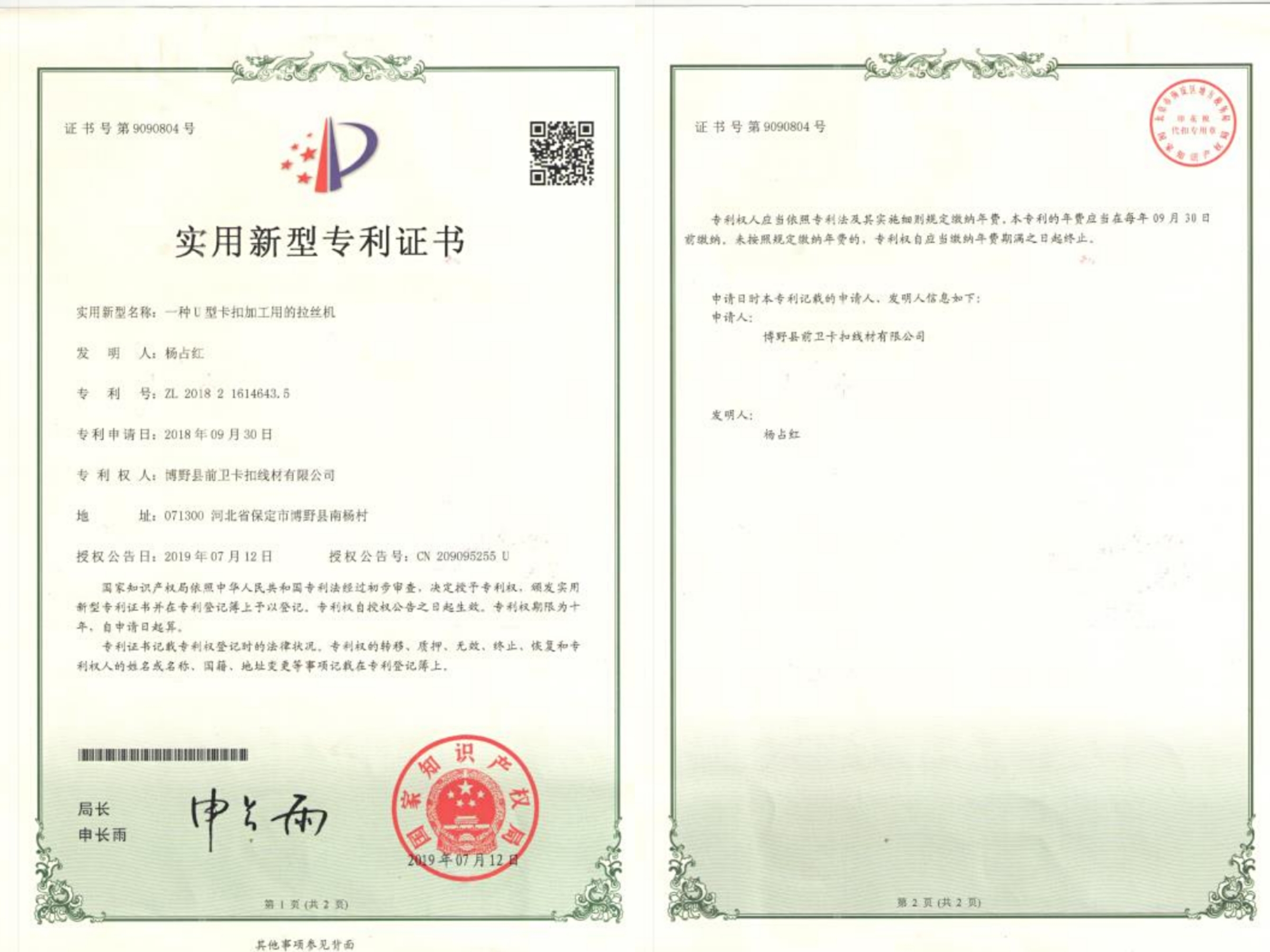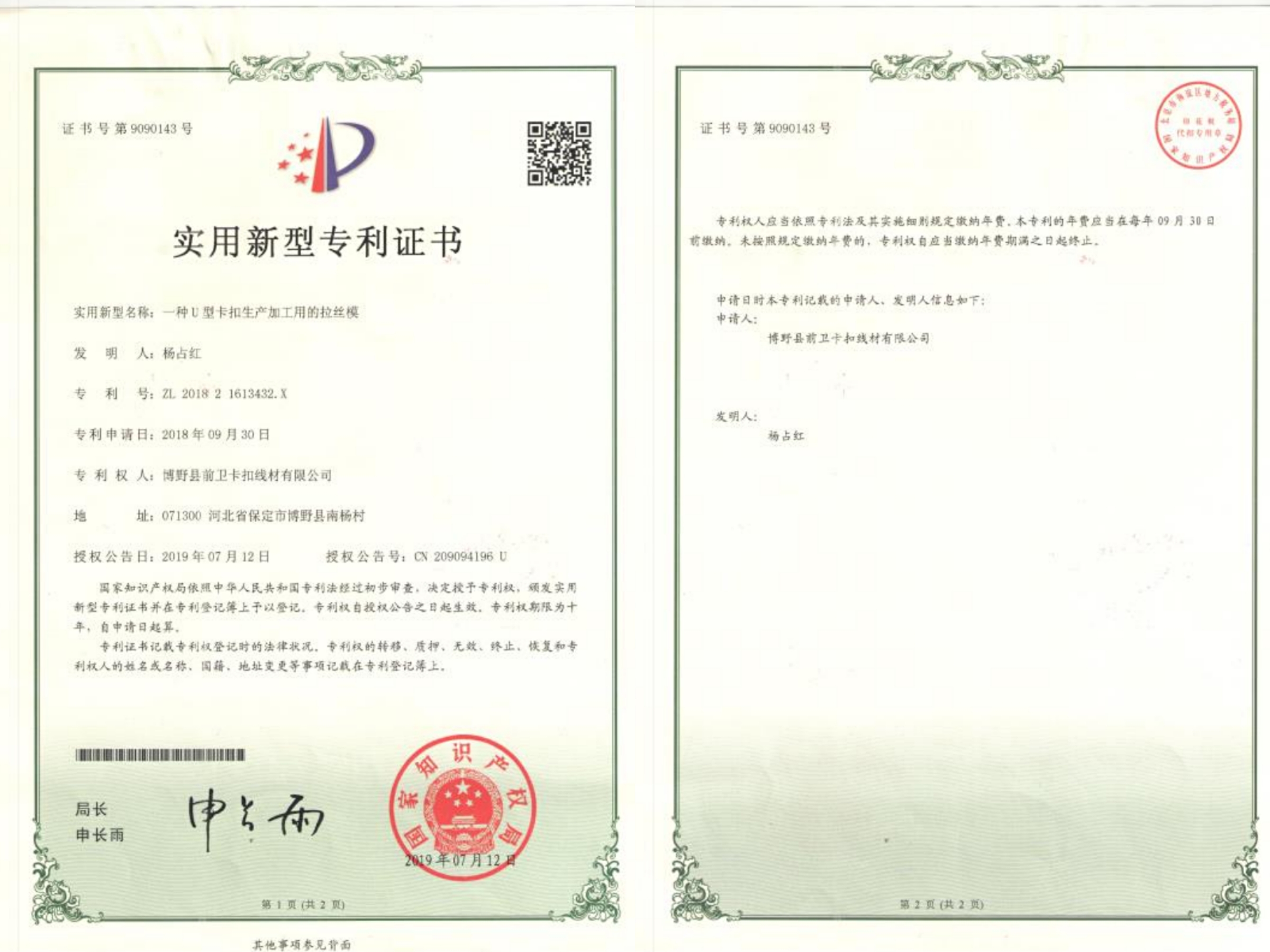 专利证书