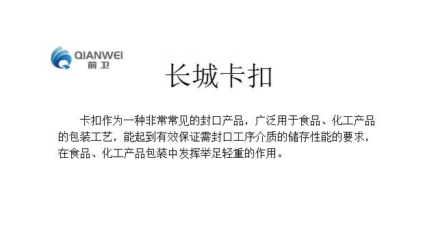 博野县前卫卡扣线材有限公司始创于1996年,是集设计、研发、生产、销售、服务为一体的生产厂家。